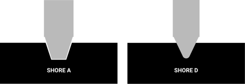 Shore Durometers are broken up into two different units of measurements. Shore A, which measures softer materials such as rubber, and Shore D, which measures harder materials such as hard rubbers and hard plastics. Since Shore A measures softer materials the tool has a flatter tip to determine the softness, while Shore D uses a pointed tip to measure the hardness of harder materials.